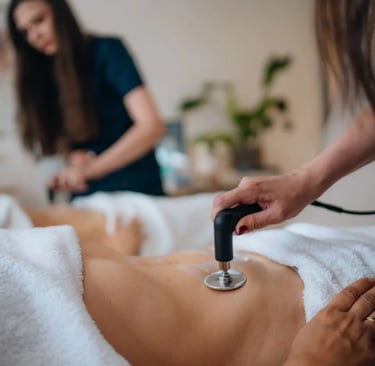 Massagens e técnicas manuais para relaxar e ativar os músculos.
