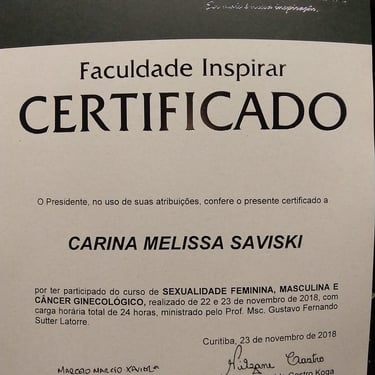 Uroginecologia e Sexualidade Funcional pela Faculdade Inspirar/ Curitiba, PR;