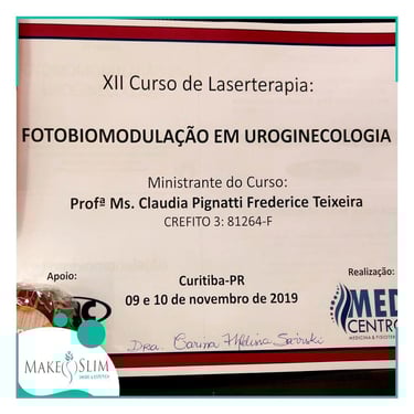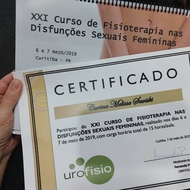 Pós graduada Latu-Sensu em Fisioterapia Pélvica Internacional em fisioterapia pélvica internacional;